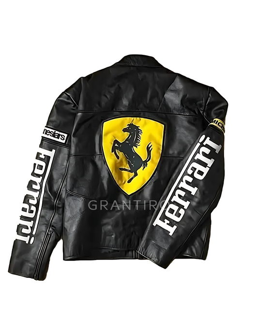 Black Ferrari Leather Jacket – Limited Drop | Grantiro® F1 Edition